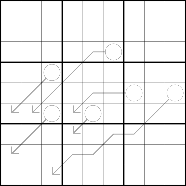 Global Entropy: All 2x2 regions in the grid must contain a low, medium, and high digit (123, 456, 789).