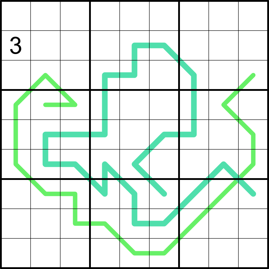 Normal sudoku rules apply. Adjacent digits along the thin German Whispers line differ by at least 5. Adjacent digits along the thick Factor Line are factors or multiples of each other (including a factor of 1).