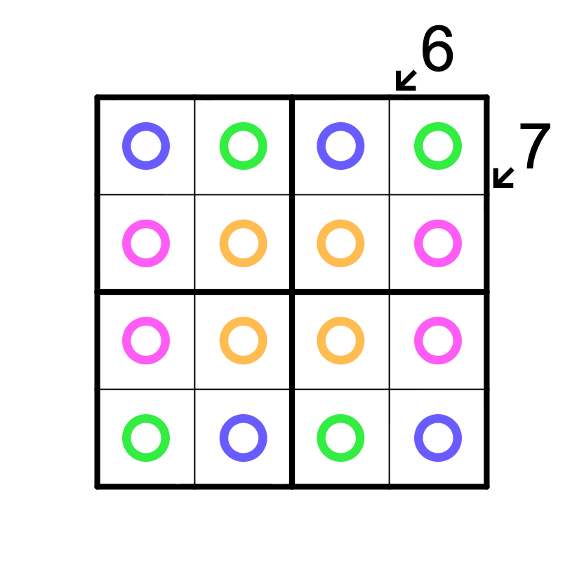 (2.) Ziffern in derselben Farbe dürfen nicht mehrfach vorkommen. e.g. R1C1 ≠ R4C2