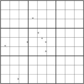 The digit 1 represents the emperor, precise and prideful. It never appears in the same box position twice. It is never orthogonally adjacent to a 7, 8, or 9.
