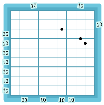 If a black dot sits between two digits, then one is double the other.