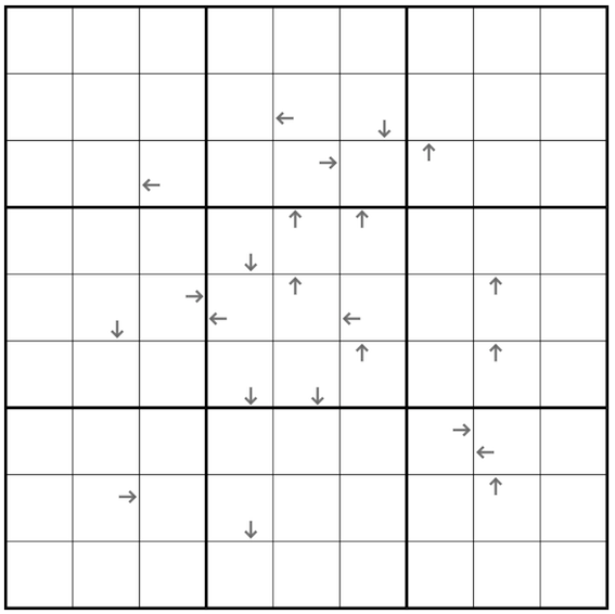 These four neighbours must match the binary code of the digit with the small arrow.
