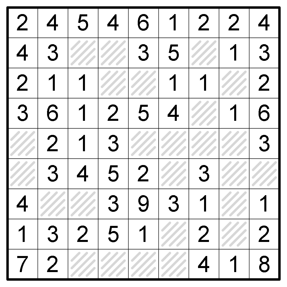 • Divide the grid into regions. A region contains the numbers from 1 to N once each, where N is the largest number in the region.
