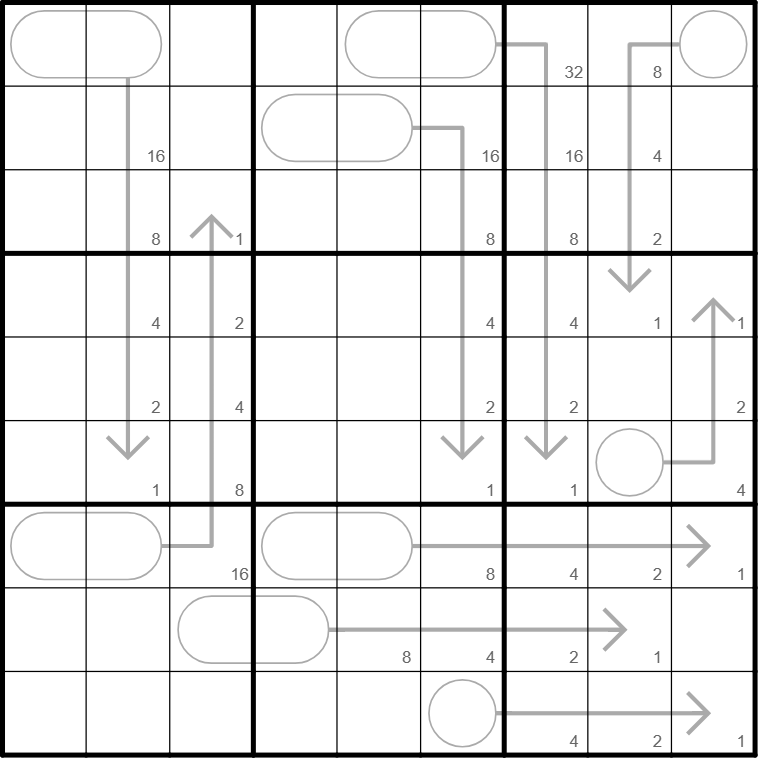 It is once again a great pleasure to feature in the long-running Dutch Flat Mates series by Flinty. This week the paired constraint is Binary Sum Arrows. If you'd like other puzzles featuring this constraint, I can recommend the following by its creators: