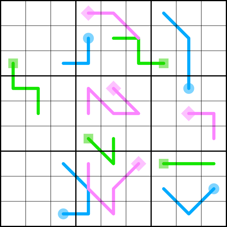 Renban = Cells along a pink line must be a set of consecutive digits in any order.