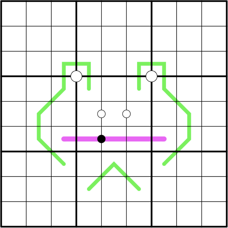 Very hard puzzle. I got confused by the eyes of the frog, that look like a white dot, but actually are not and can not be that. There was a trick that came back a lot that I liked, but was hard to spot. Many steps were very hard to find for me. In the end, after almost 3 hours, I lucked into the solution by a long bifurcation chain. Thank you for the puzzle.