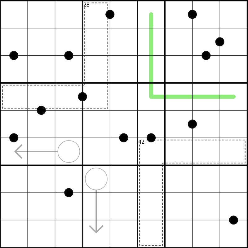 Digits separated by a black kropki dot have a ratio of 1:2, in some order. All possible black kropki dots are given.
