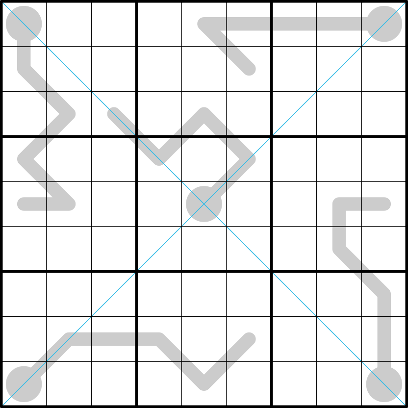 - Diagonals: Digits may not repeat along the two main diagonals.