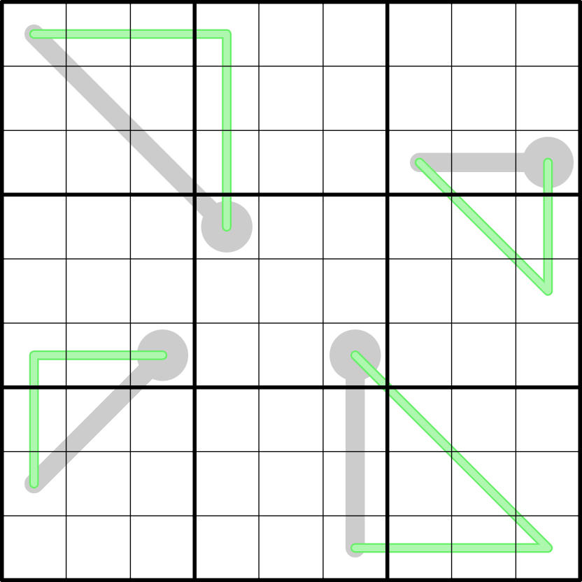 • Sudoku: Fill all rows, columns and marked 3x3 regions with the digits 1-9 without any repeats.