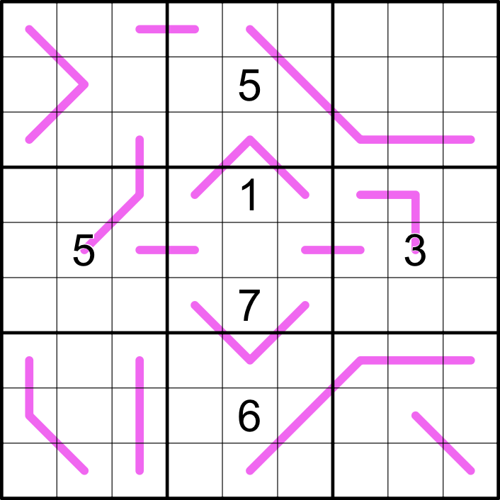 Renban: Digits along a line form a non-repeating set of consecutive digits in any order.