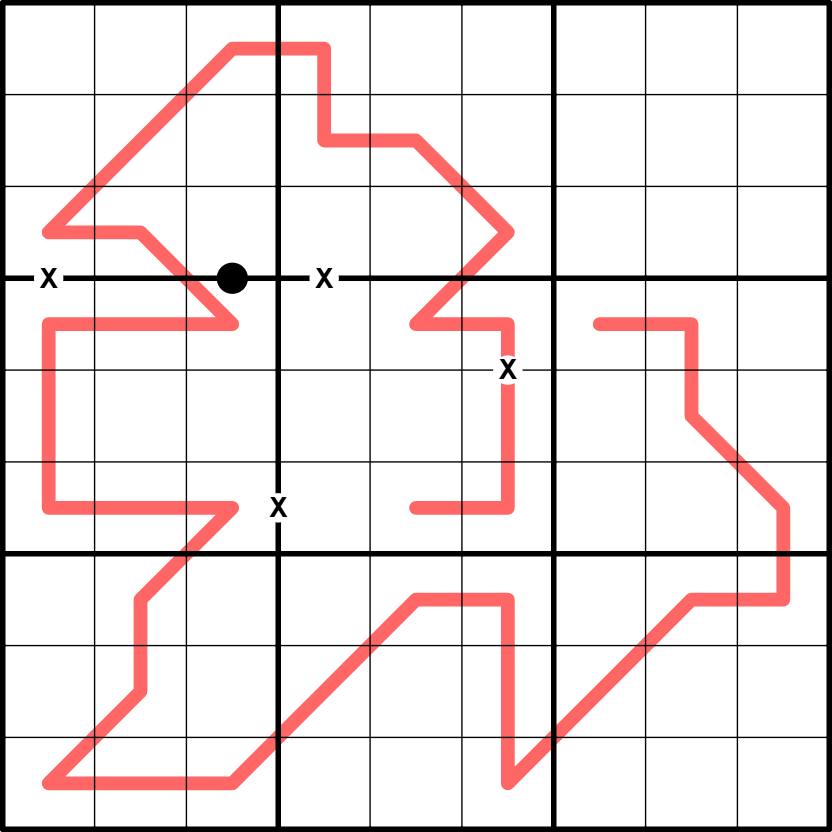 3x3 box borders divide the red line into segments. Each segment can either be a German Whisper (adjacent digits must be at least 5 apart) or a sequence line (adjacent digits must all have the same difference).