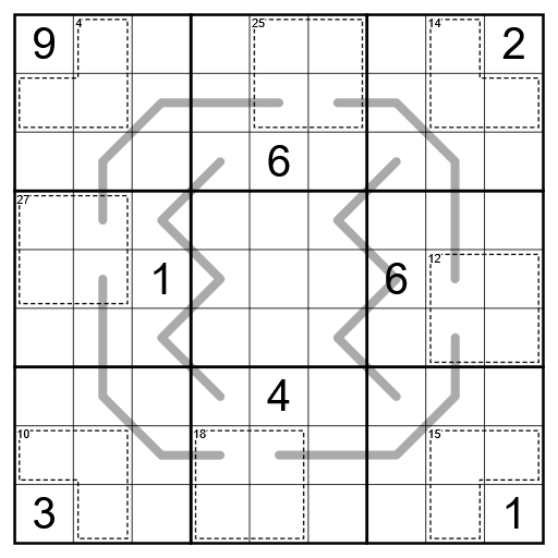 • However, one of the digits is a 'vampire'. If the vampire digit is in a cage, it doesn't add to the sum. If it is on a palindrome line, it is ignored.