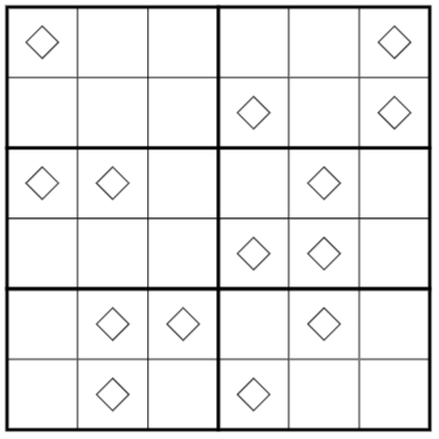 Normal sudoku rules apply: Place the digits 1 to 6 in every row, column, and 2x3 box.