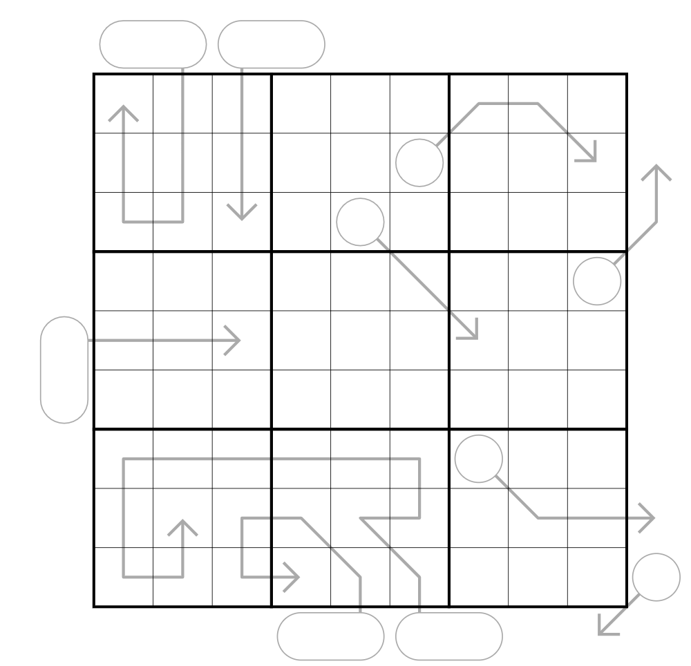 ARROWS - Values on an arrow sum to the attached circle or obround. Obrounds are read left to right or top down, and never start with zero.