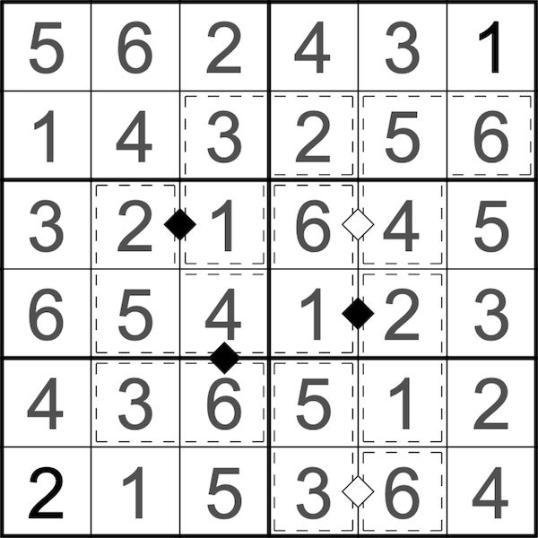 | SudokuPad-Link für das 6x6 Beispiel. |