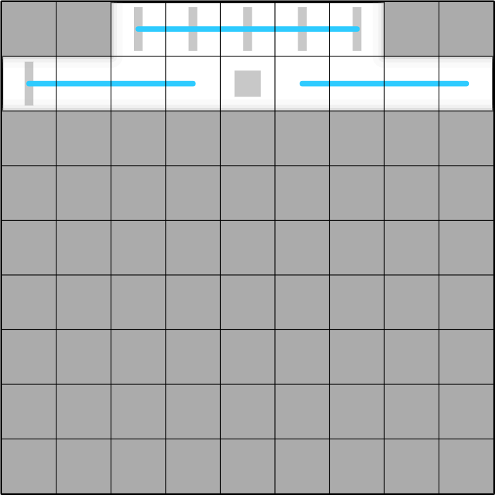 Friendly cells: A cell with a gray square shows its box number. A cell with a tall rectangle shows its original column number (before shuffling). A cell with a wide rectangle shows its original row number (before shuffling).