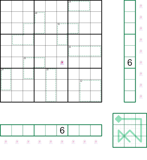 • Fill each outer cell with the digit missing from the corresponding row, column or box.