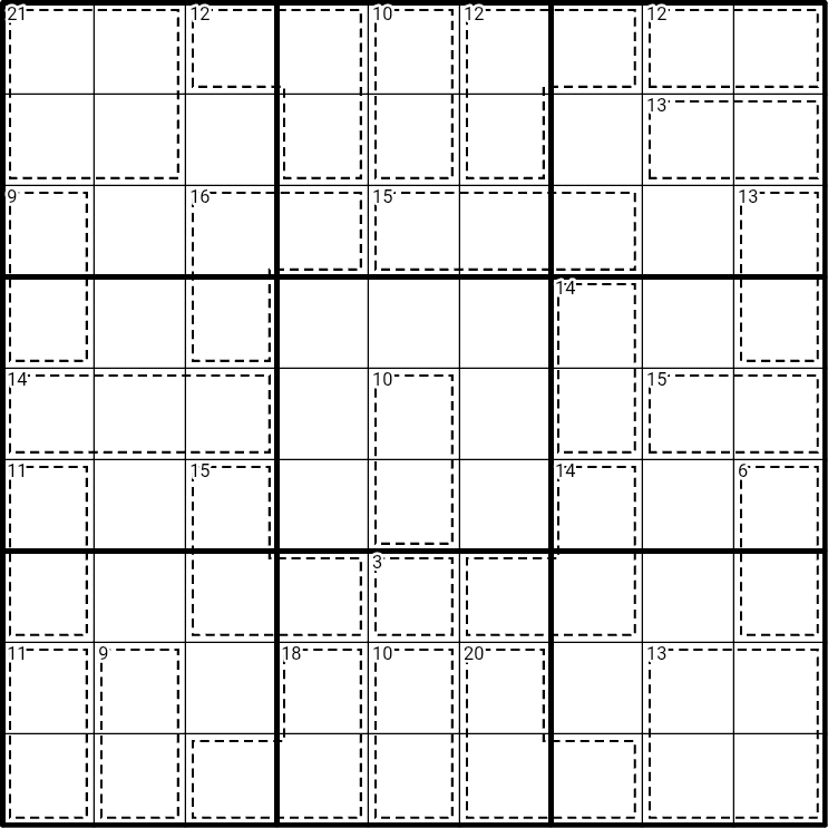 - Killer cage: Digits in a cage must sum up to the digit in the top left of the cage and cannot repeat.