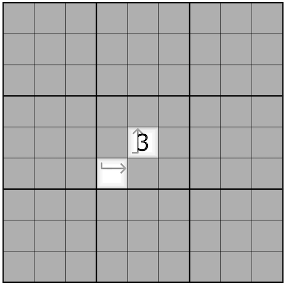 -The four orthogonally adjacent cells around it.