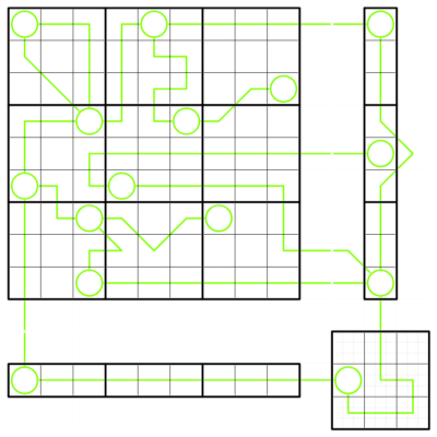- Fill each outer cell with the digit missing from the corresponding row, column or box.