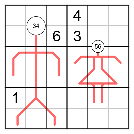 Digits in a circle must appear in a cell touching the circle.