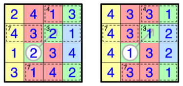 Lösungscode: Row 4 sudoku digits followed by row 4 fillomino digits (left to right, 10 digits)