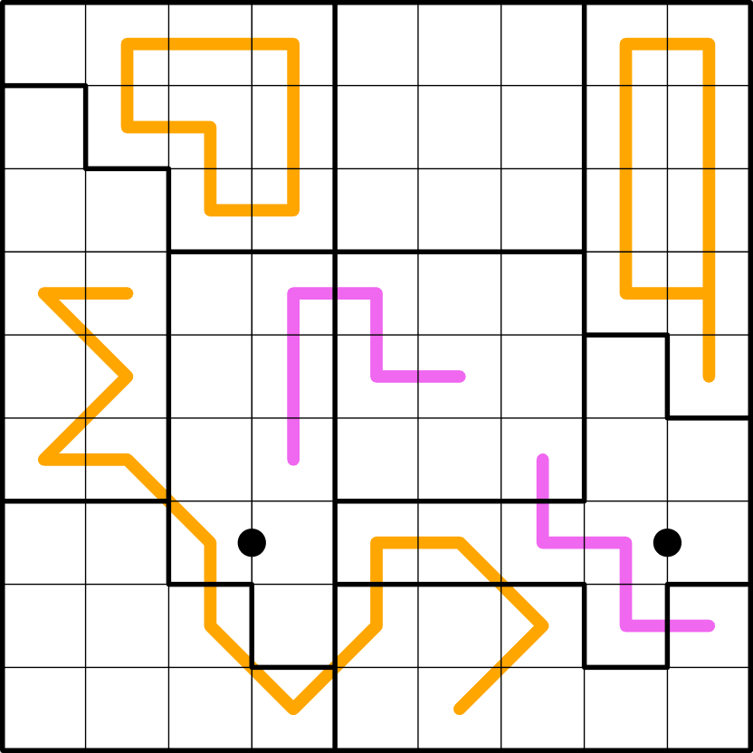 Dutch Whisper: Adjacent digits along an orange line must differ by at least 4.