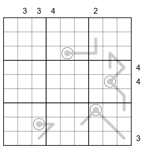 Digits outside the grid indicate how many segments of odd cells / even cells divide the corresponding row or column.