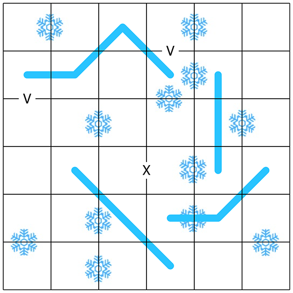 Snowflake Kropki Dots: Digits in cells separated by a Snowflake are consecutive. SNOWFLAKES INDICATE REGION BORDERS. Not all snowflakes are necessarily given.