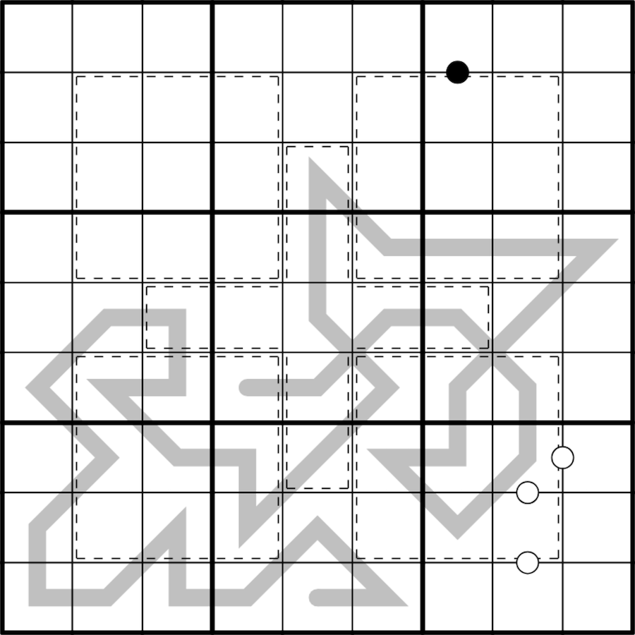 Cells separated by a black dot are in the ratio 1:2 and by a white dot are consecutive. Not all dots are given.