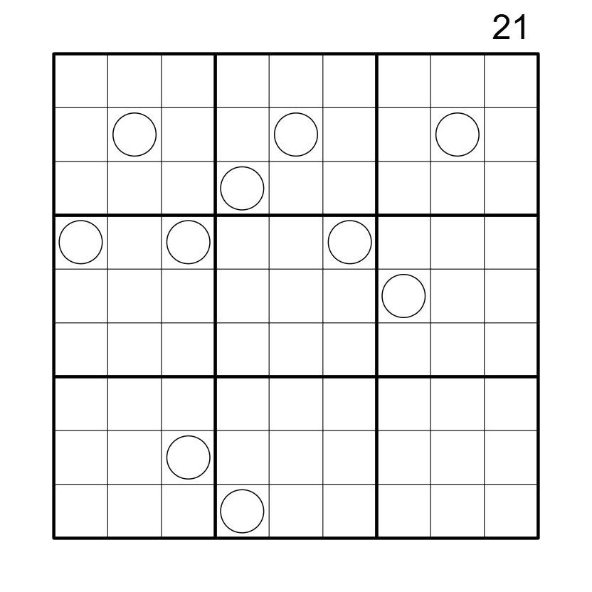Sandwich Sum: The 21 clue above column 9 indicates that the digits between 1 and 9 in the column sum to 21.