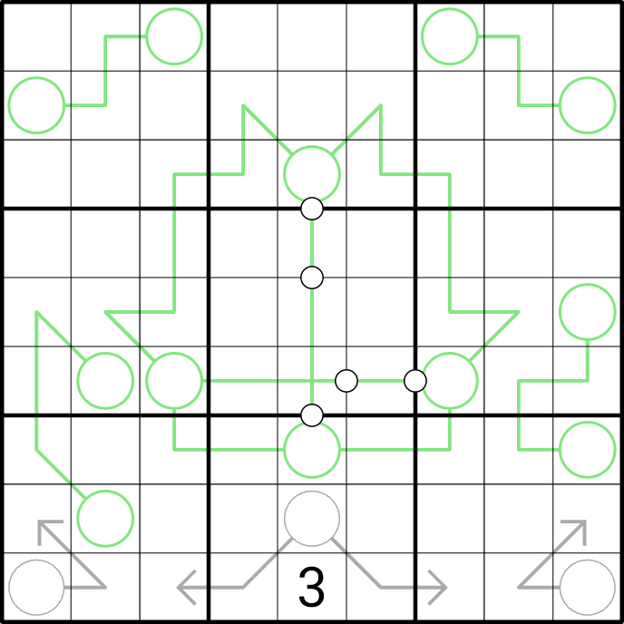 This was inspired by Scojo's Setting Saturday prompt. The aim of the prompt was to create a puzzle using split pea lines and Kropki dots. I threw a few arrows in too, because why not? :D