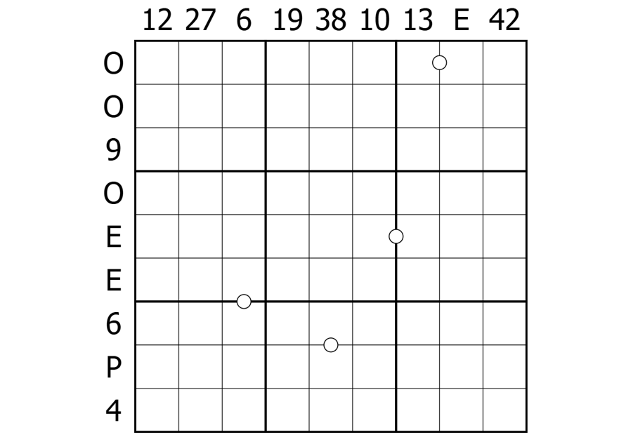 Kropki: Cells separated by a white dot are consecutive.