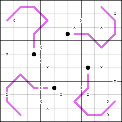 Renban lines: along the purple line, digits are consecutive, but may be in any order.
