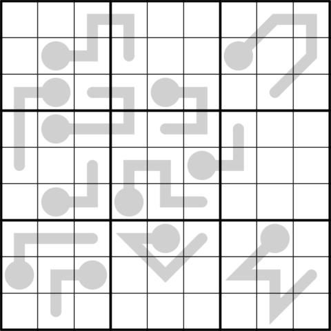 Es gelten herkömmliche Sudoku Regeln. Jede Zeile, Reihe und markierte Region enthält die Ziffern 1-9 genau einmal.