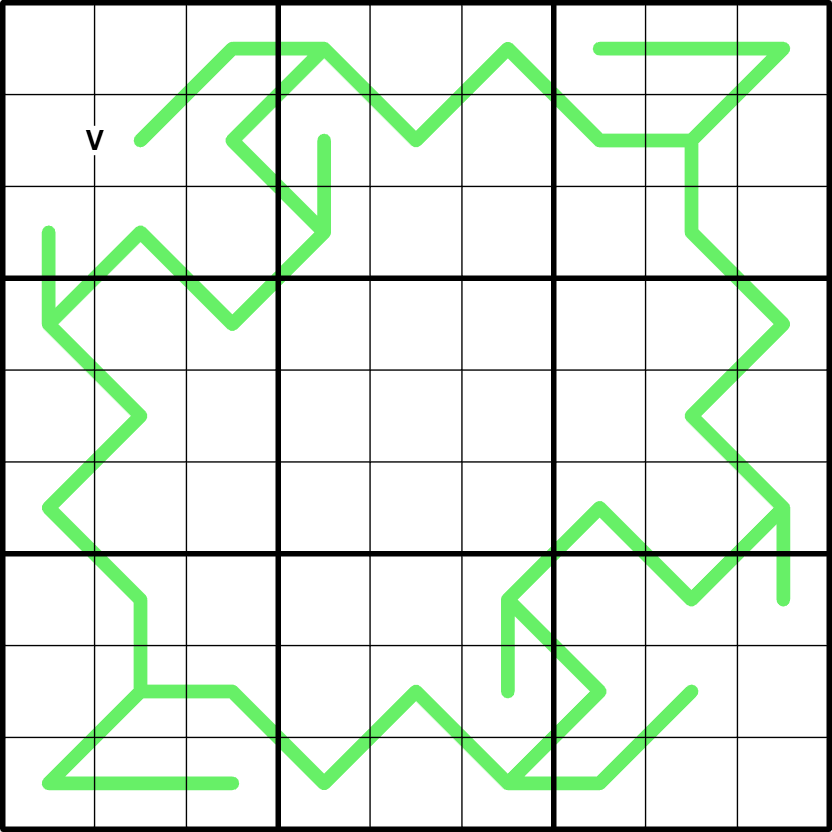 German whisper: Neighbouring/adjacent digits along a green line have a difference of at least 5.