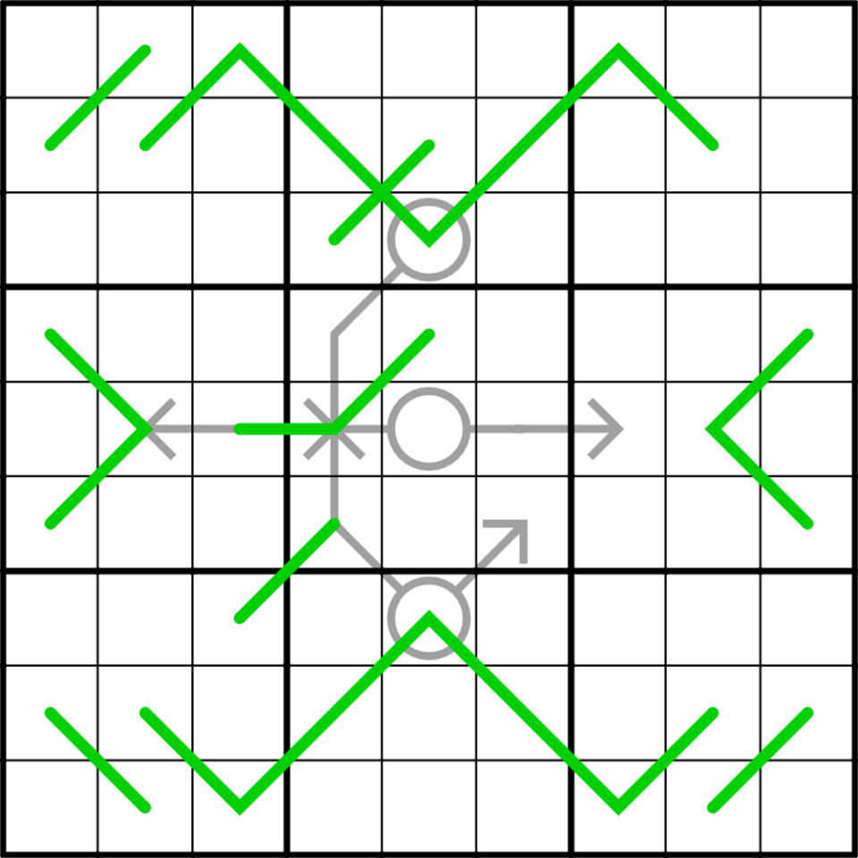The mess in r5c4: Yeah that's my bad. There are three arrows there, the top and bottom end there and the middle one goes left under the Whispers line. Really sorry about that, it won't happen again.
