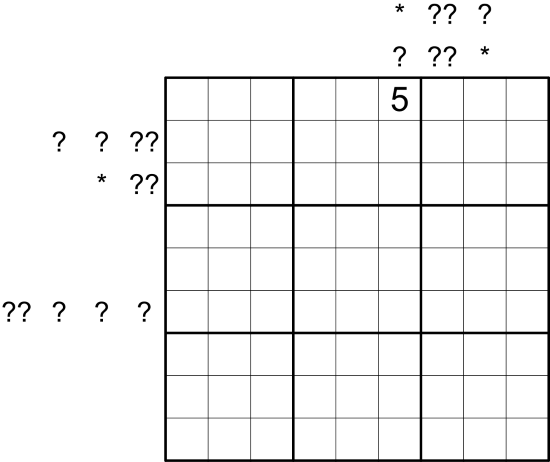 Japanese Sums: Clues outside the grid give the sums of loop segments in the respective row or column, in order, where cells not on the loop separate segments. A question mark indicates any digit from 0 to 9, but no clue may have a leading zero. An asterisk denotes an arbitrary number of Japanese sum clues. This could be zero, one, or multiple.