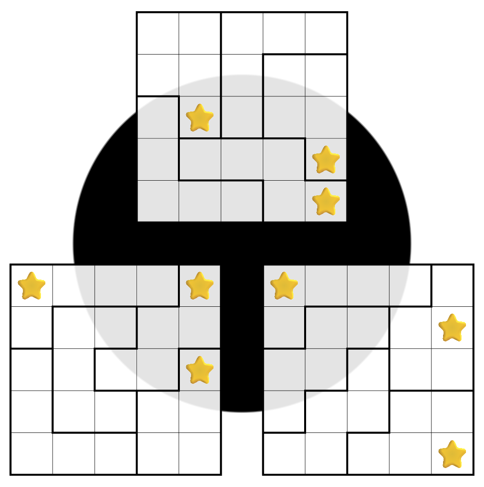 IRREGULAR SUDOKU - In each puzzle, place the digits 1-5 once each in every row, column, and region.