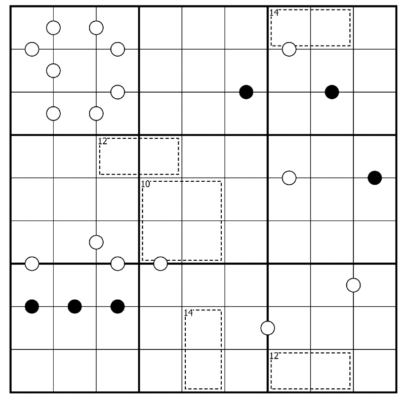 - Kropki Pairs: Digits separated by a black dot must have one digit be double the other (a 2:1 ratio). Digits separated by a white dot must be consecutive.
