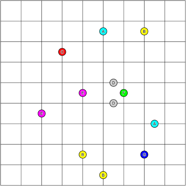 - Diplomat (Wert = 4X): Um Diplomat zu werden, muss eine Zelle orthogonal und/oder diagonal von mindestens X verschiedenen anderen Regionen berührt werden.