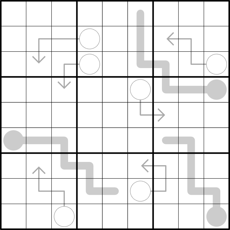 Digits on an arrow sum to the number in the attached circle. Digits may repeat on an arrow.