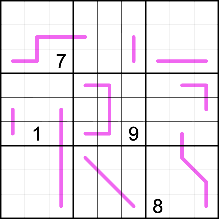 In jeder Zeile, jeder Spalte und jedem Block gibt es GENAU zwei Minimum-Felder. Ein Minimum-Feld darf nicht auf einer Renban-Linie liegen. Es ist deine Aufgabe, sie alle zu finden.