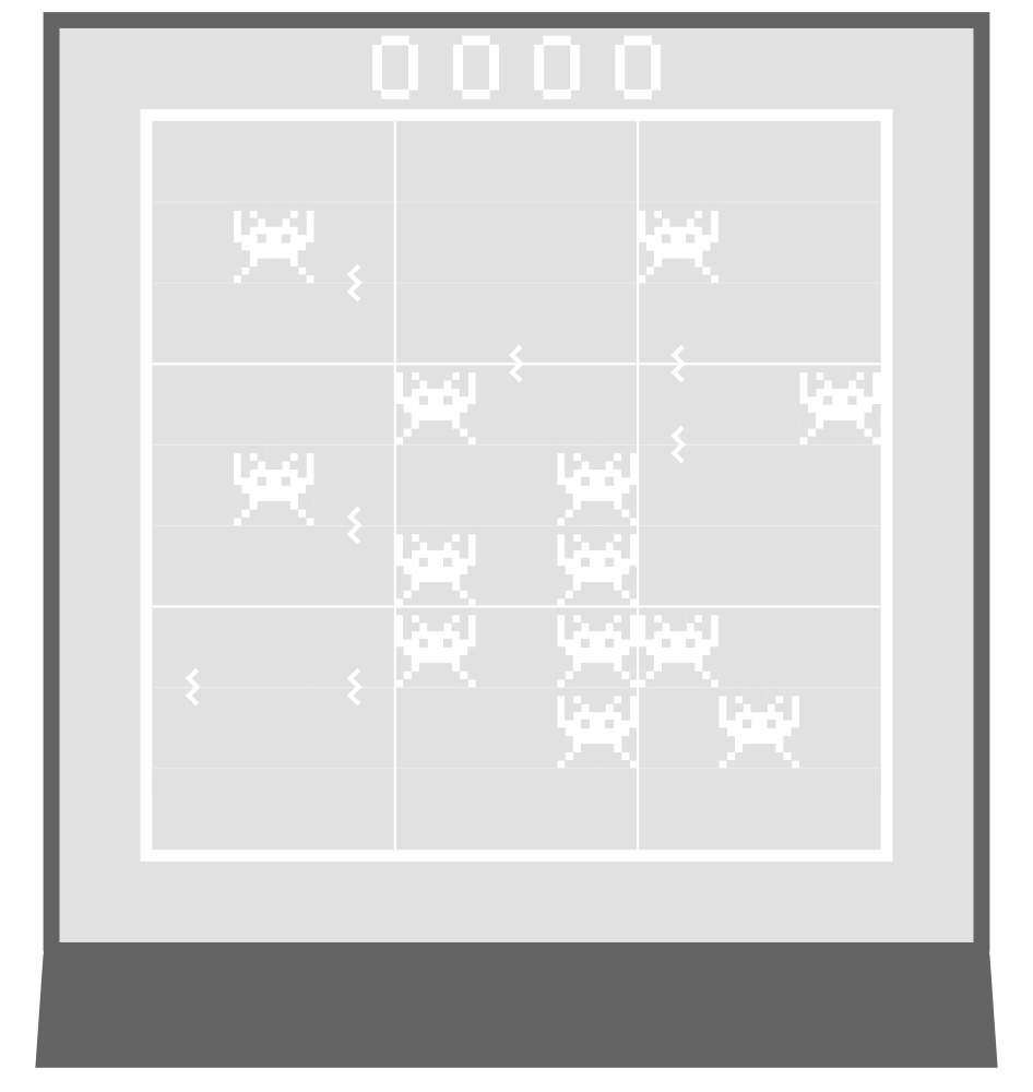 - Shade some cells ("mines") and leave some unshaded ("cleared"). Two cleared cells are shown.