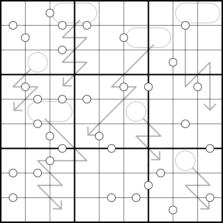 Normal sudoku rules apply. Digits along the arrows must sum to the digit or a two-digit number read left to right in the arrow bulb. White dots separate consecutive digits. Not all dots are given.