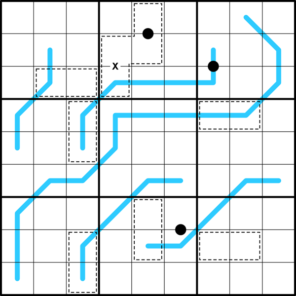 Kropki dots: A black dot between cells indicates cell values with a 2:1 ratio. Not all dots are shown.