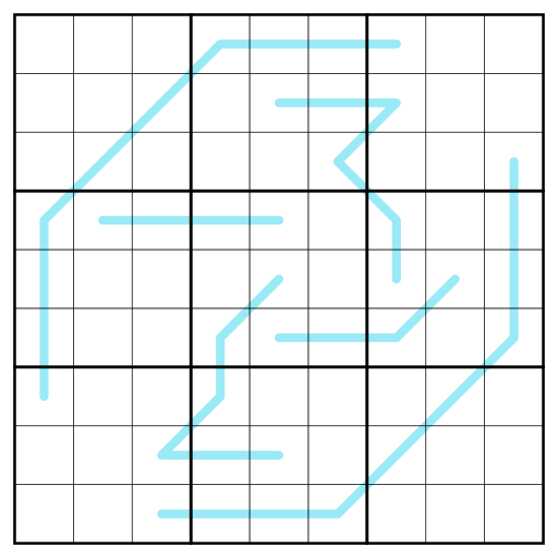 - Normal sudoku rules apply, i.e. each row, column, and 3x3 region has to contain the digits from 1 to 9 once each.