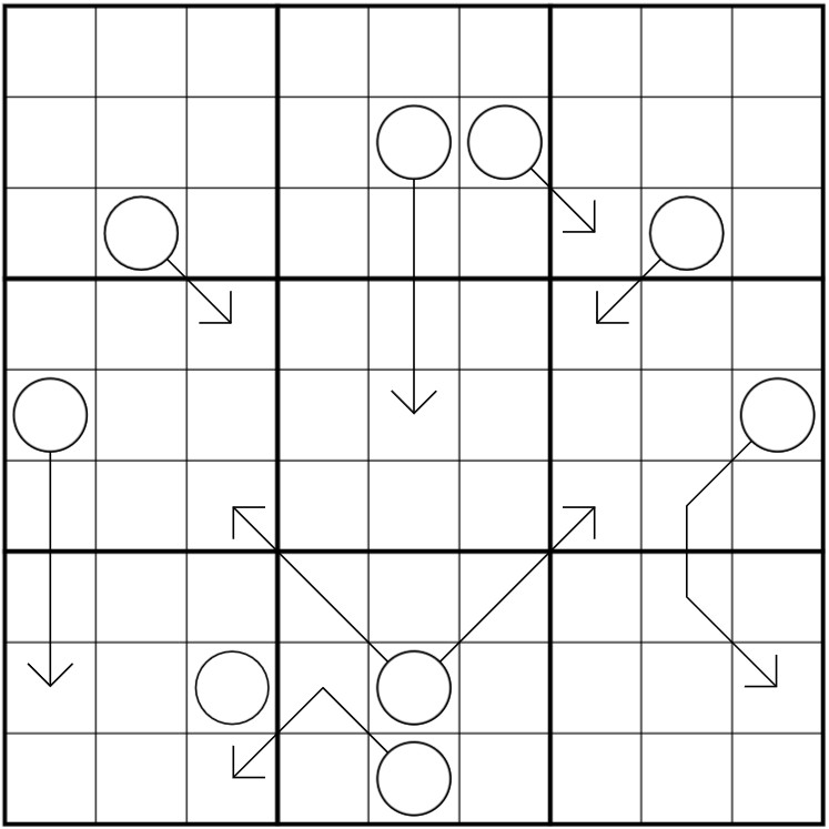For the first 20 minutes this seemed impossible to solve, good job on creating such a difficult puzzle with such a simple ruleset and setup.