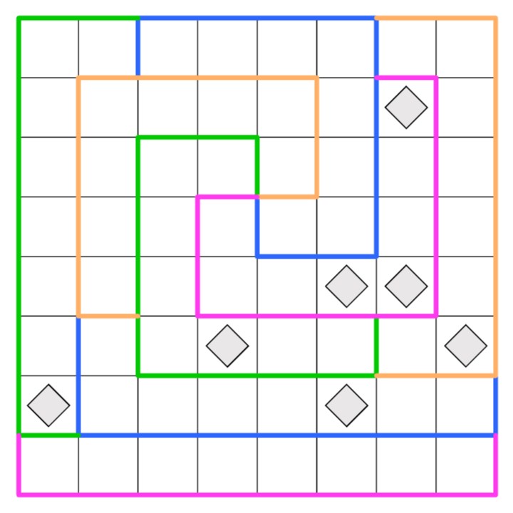 Digits in cells marked with a Diamond must be either their row or column number.