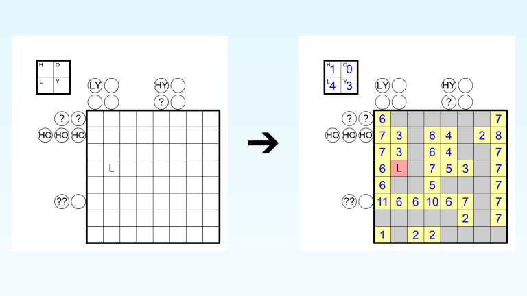 + The correct order of the clues is from left to right for the row and from top to bottom for the column. For every row/column, either all clues or no clues are given outside.